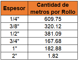 | Espesor | 1/4", 3/8", 1/2", 3/4", 1", 2" |